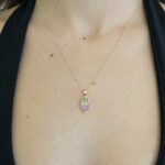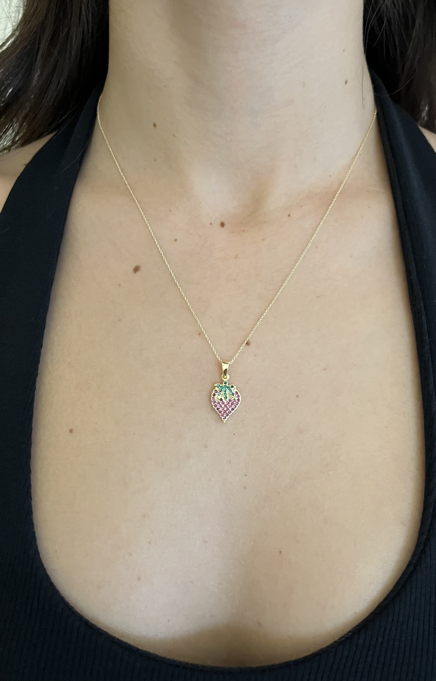 Gold Rengi Çilek Detaylı Renkli Zirkon Taşlı Kolye