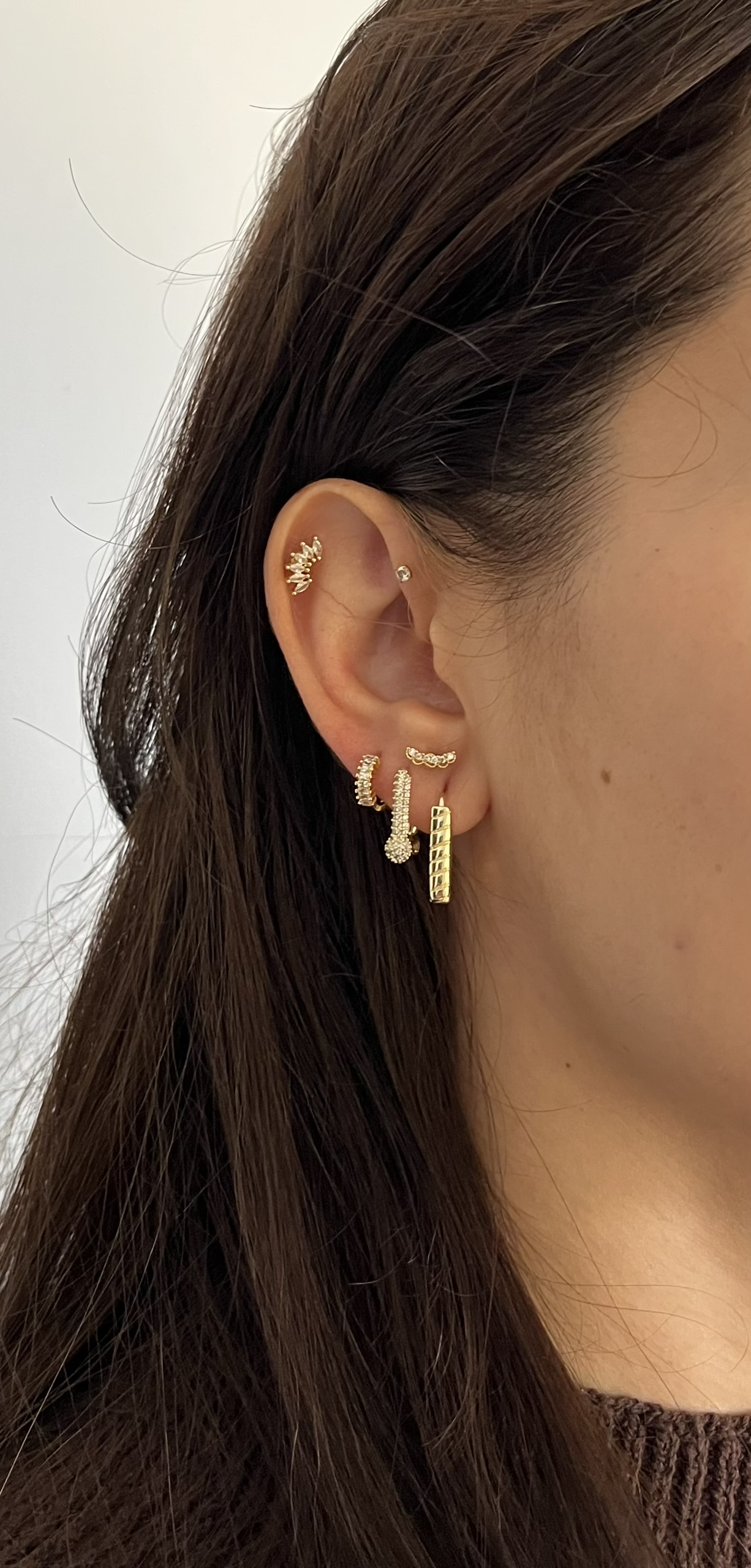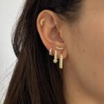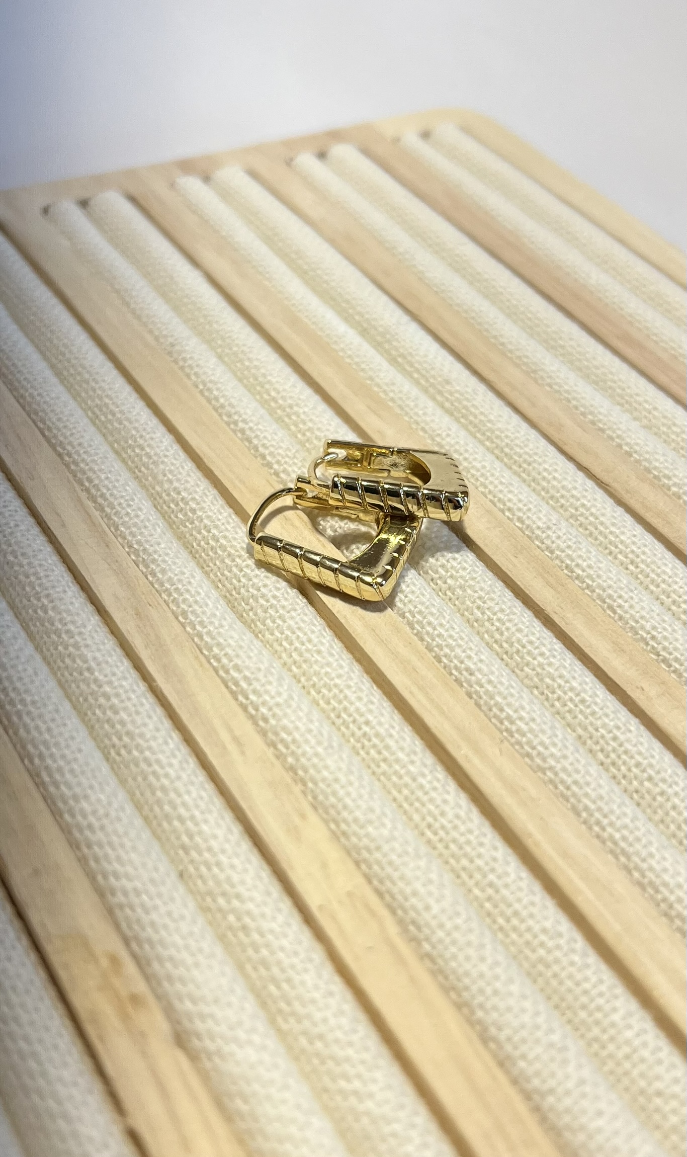 Gold Rengi Çizgi Detaylı Kare Küpe
