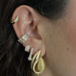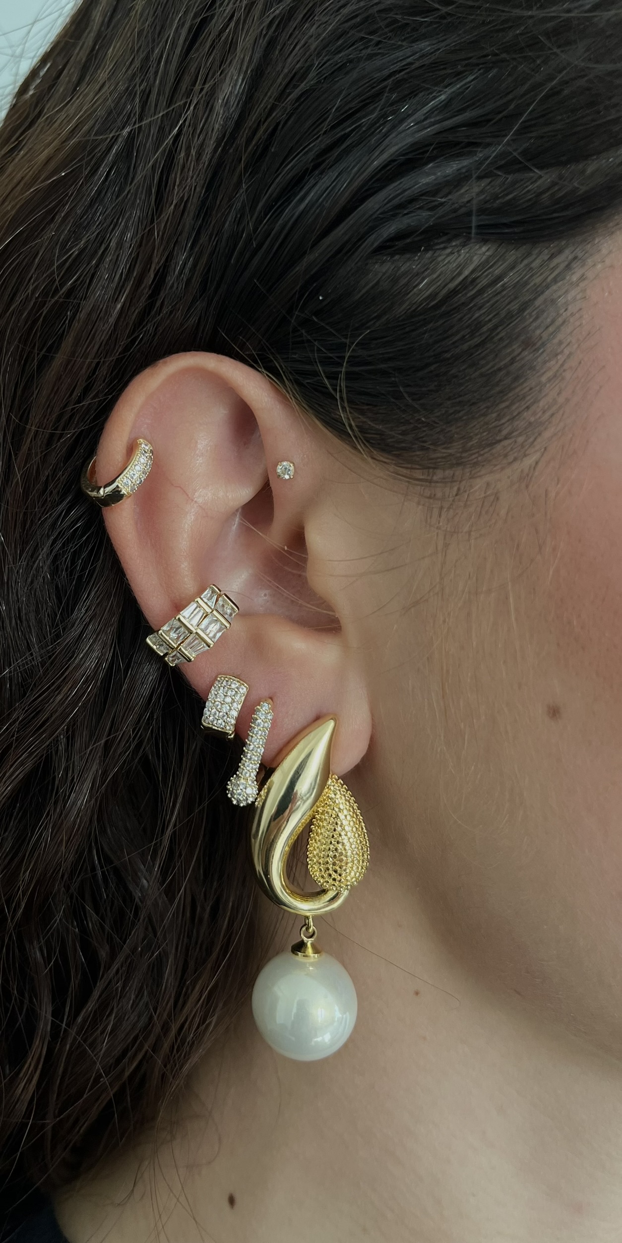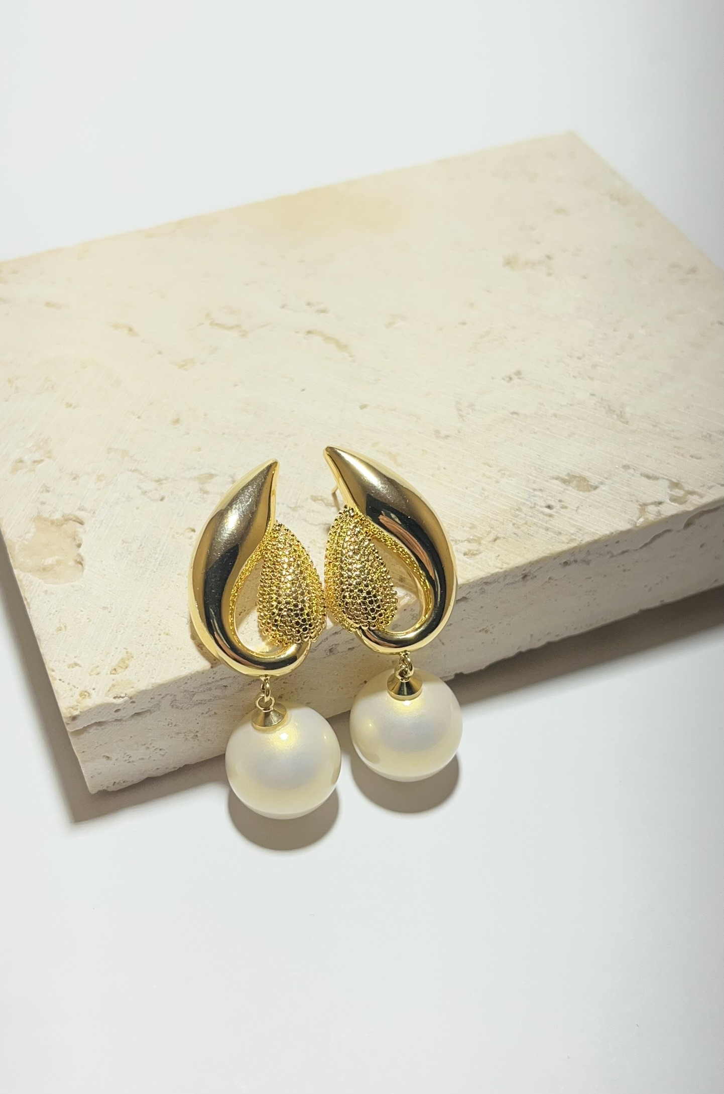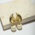 Gold Rengi İnci Detaylı Desenli Küpe