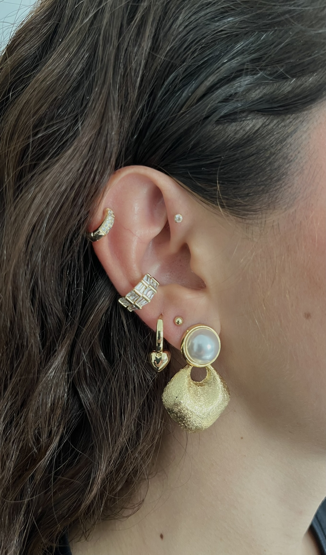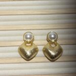 Gold Rengi İnci Detaylı Tombul Model Küpe