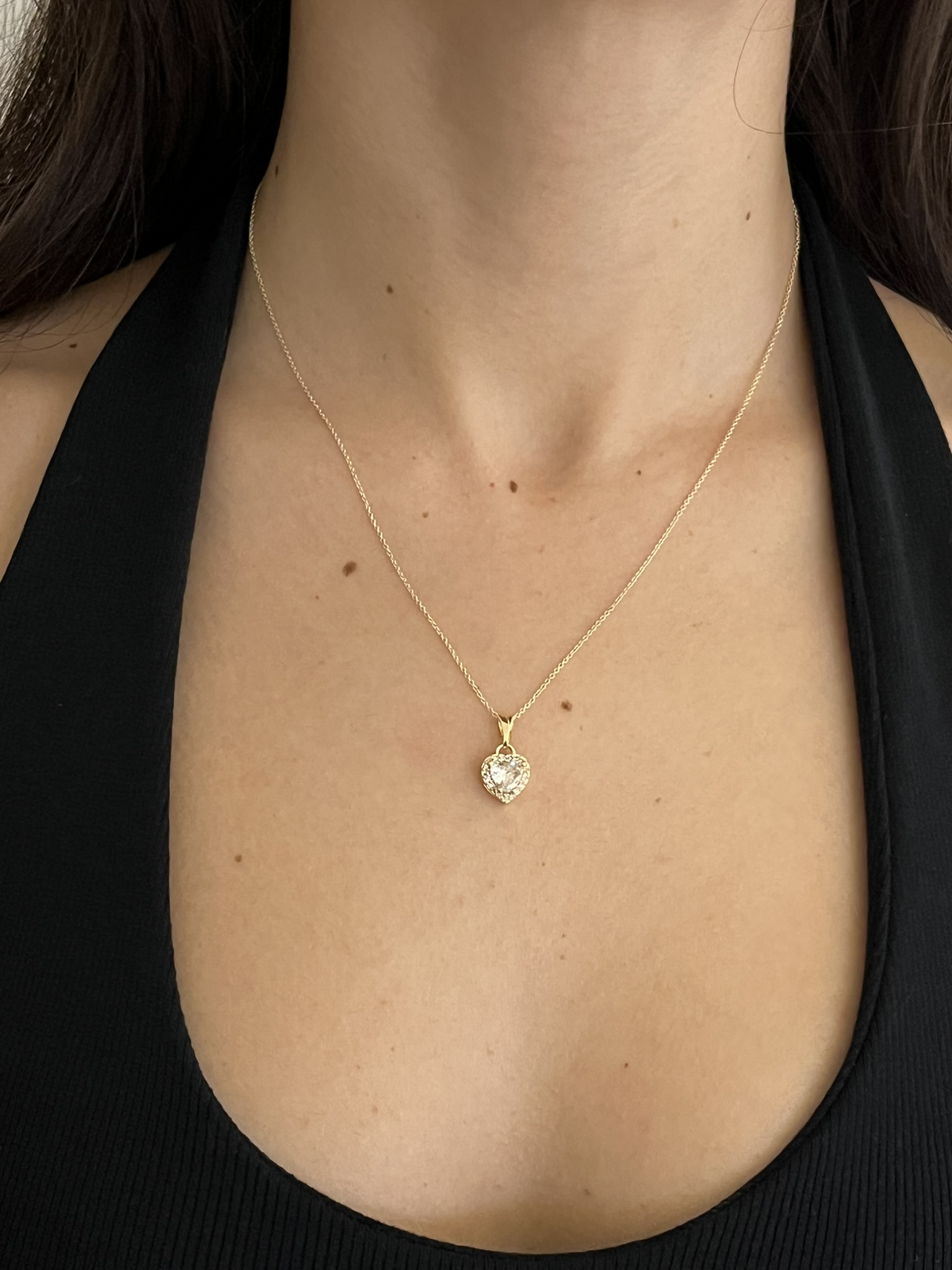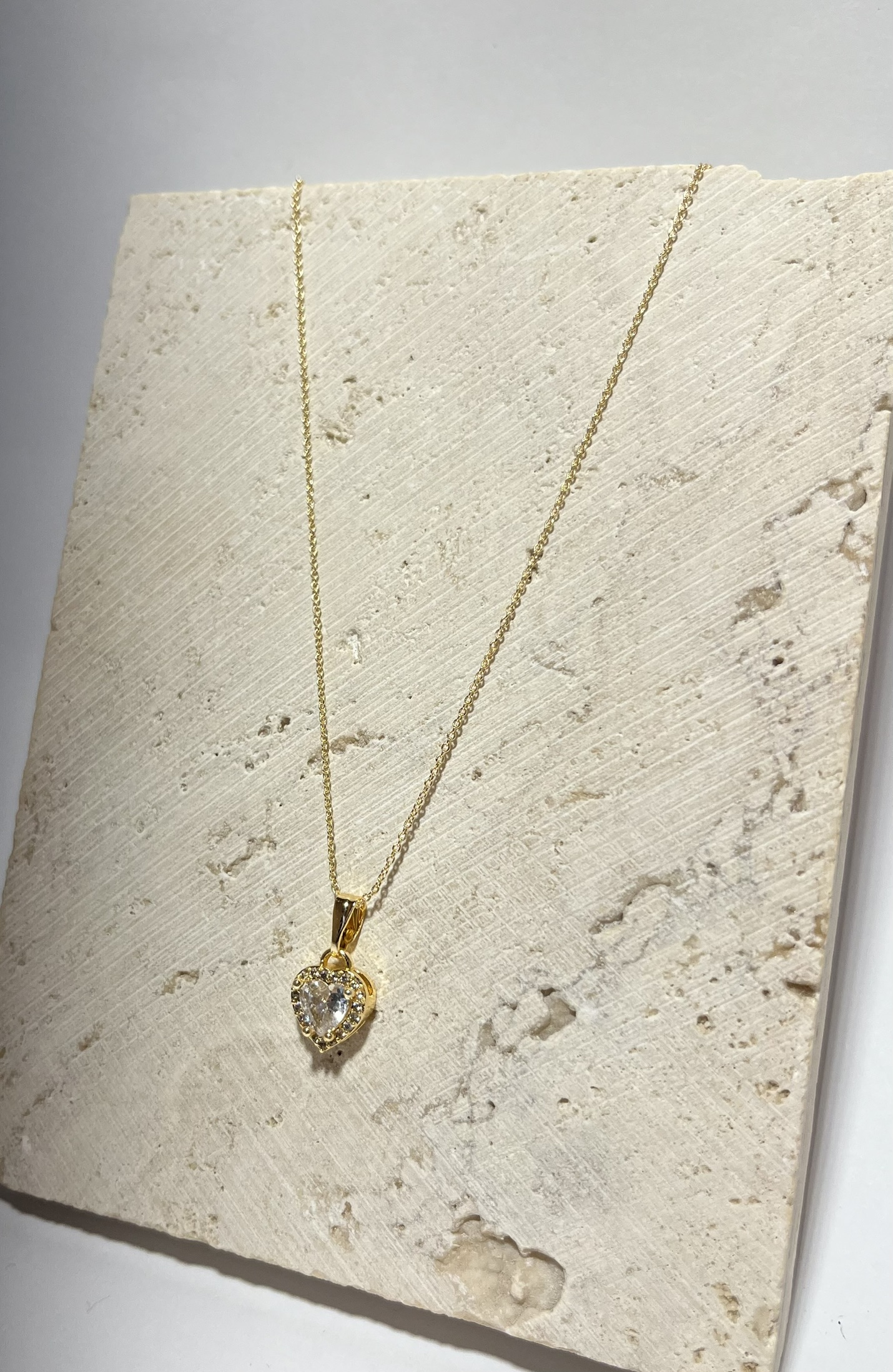 Gold Rengi Kalp Detaylı Zirkon Taşlı Kolye