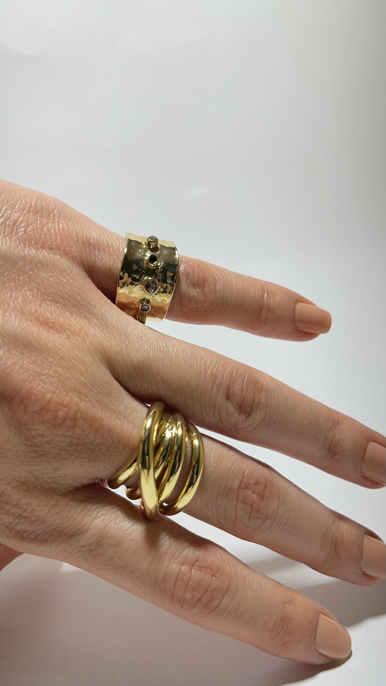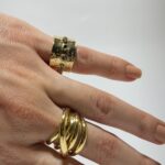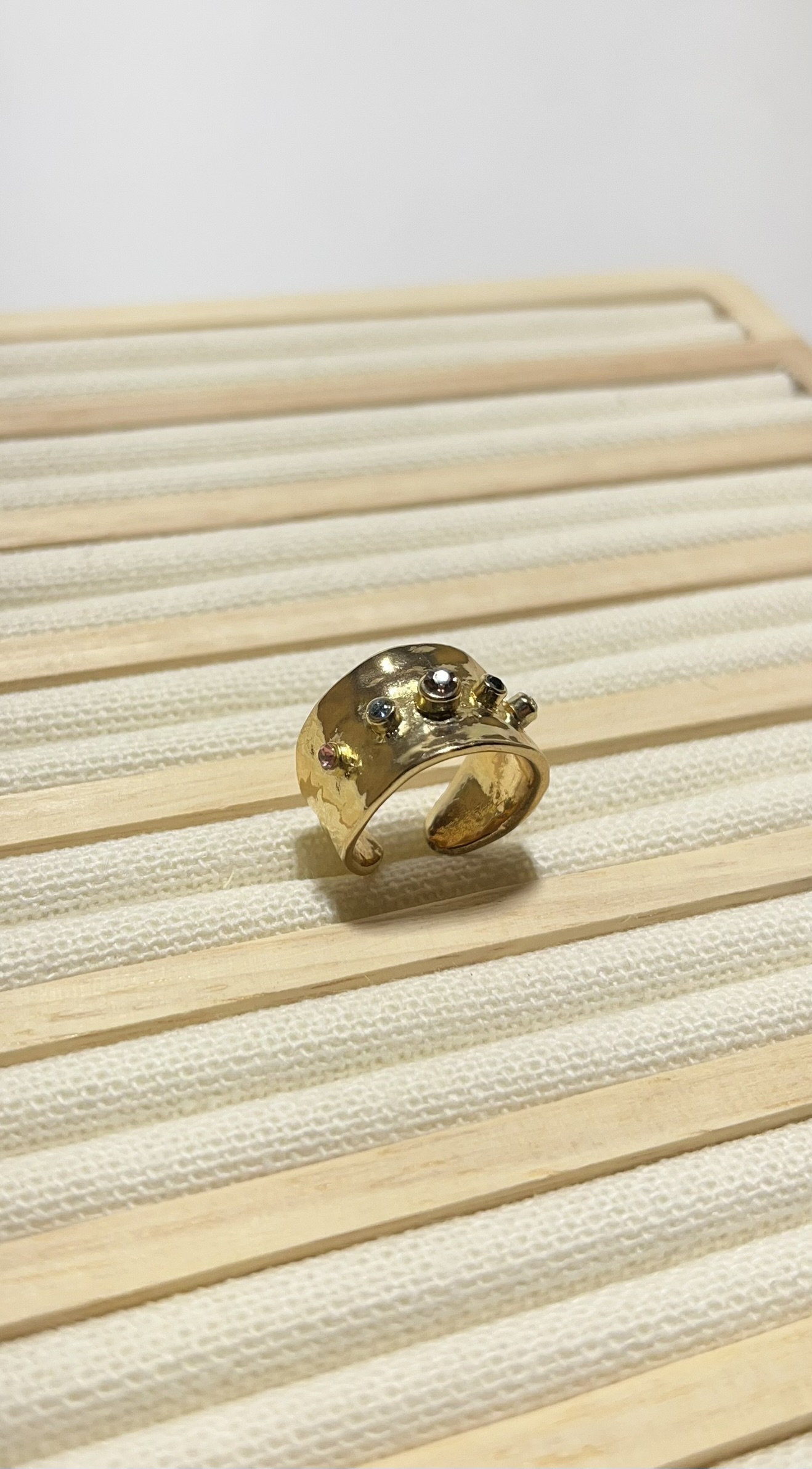 Gold Rengi Renkli Doğal Taş Detaylı Serçe Parmak Yüzük