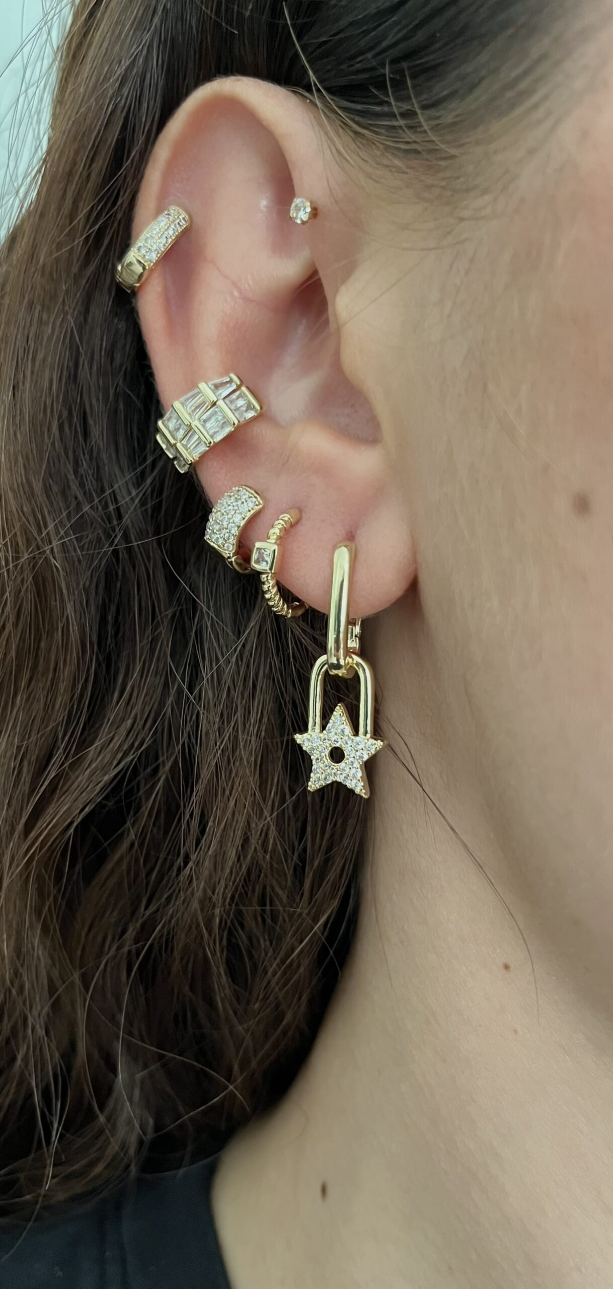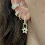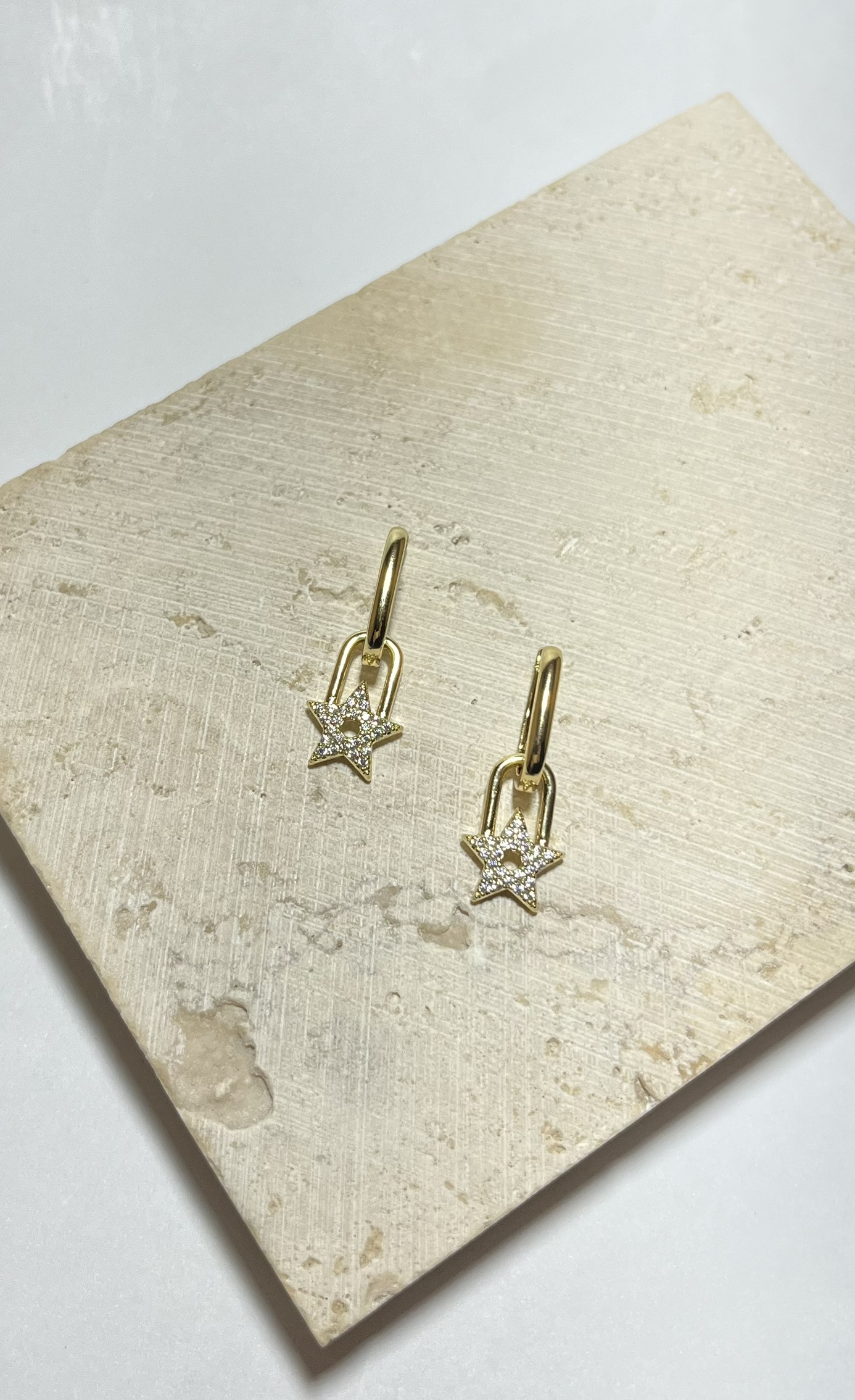 Gold Rengi Yıldız Detaylı Zirkon Taşlı Küpe