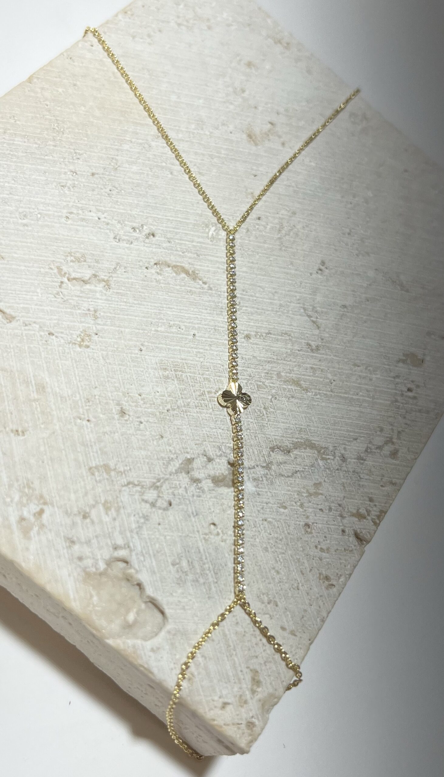 Gold Rengi Yonca Detaylı Zirkon Taşlı Şahmeran