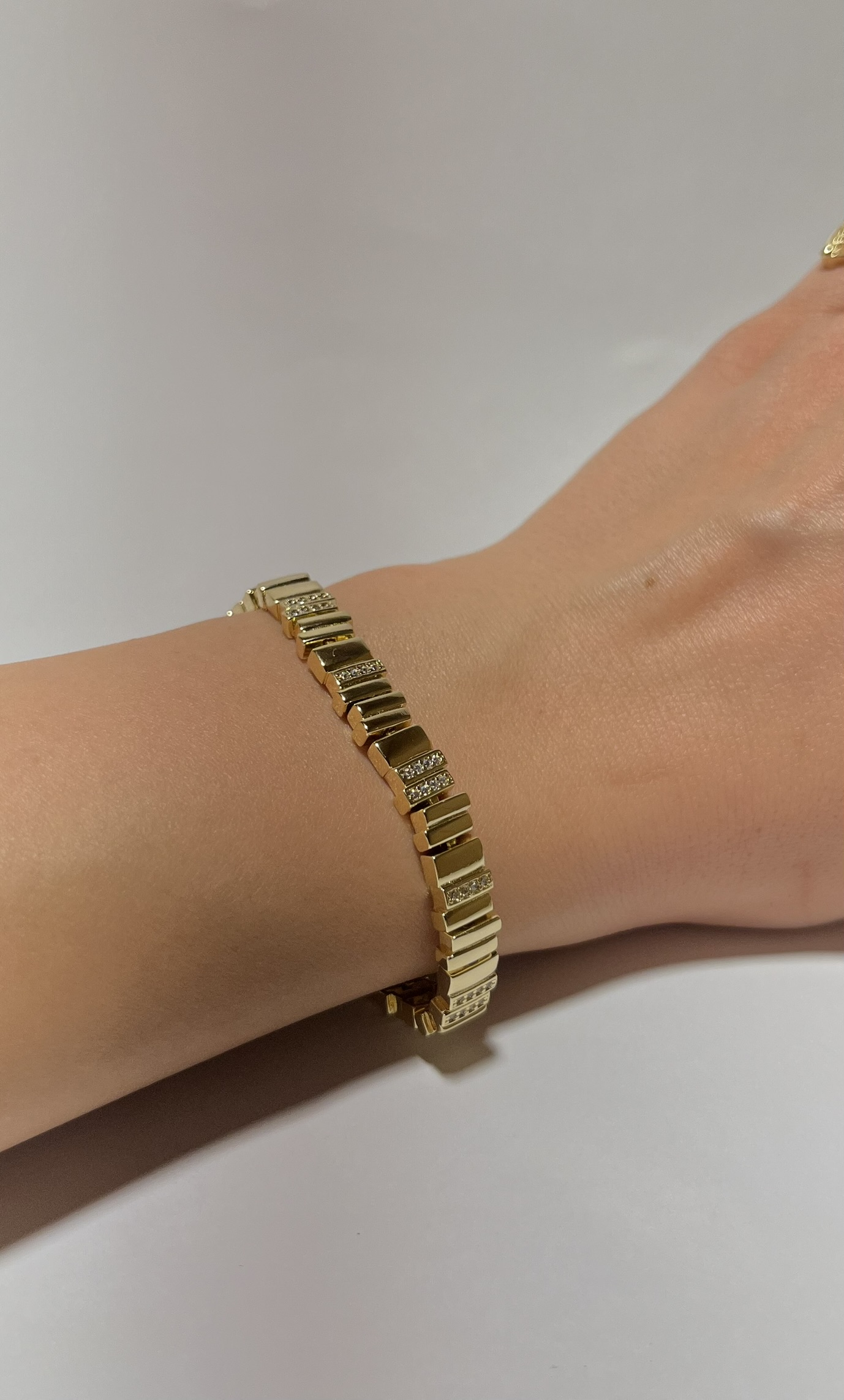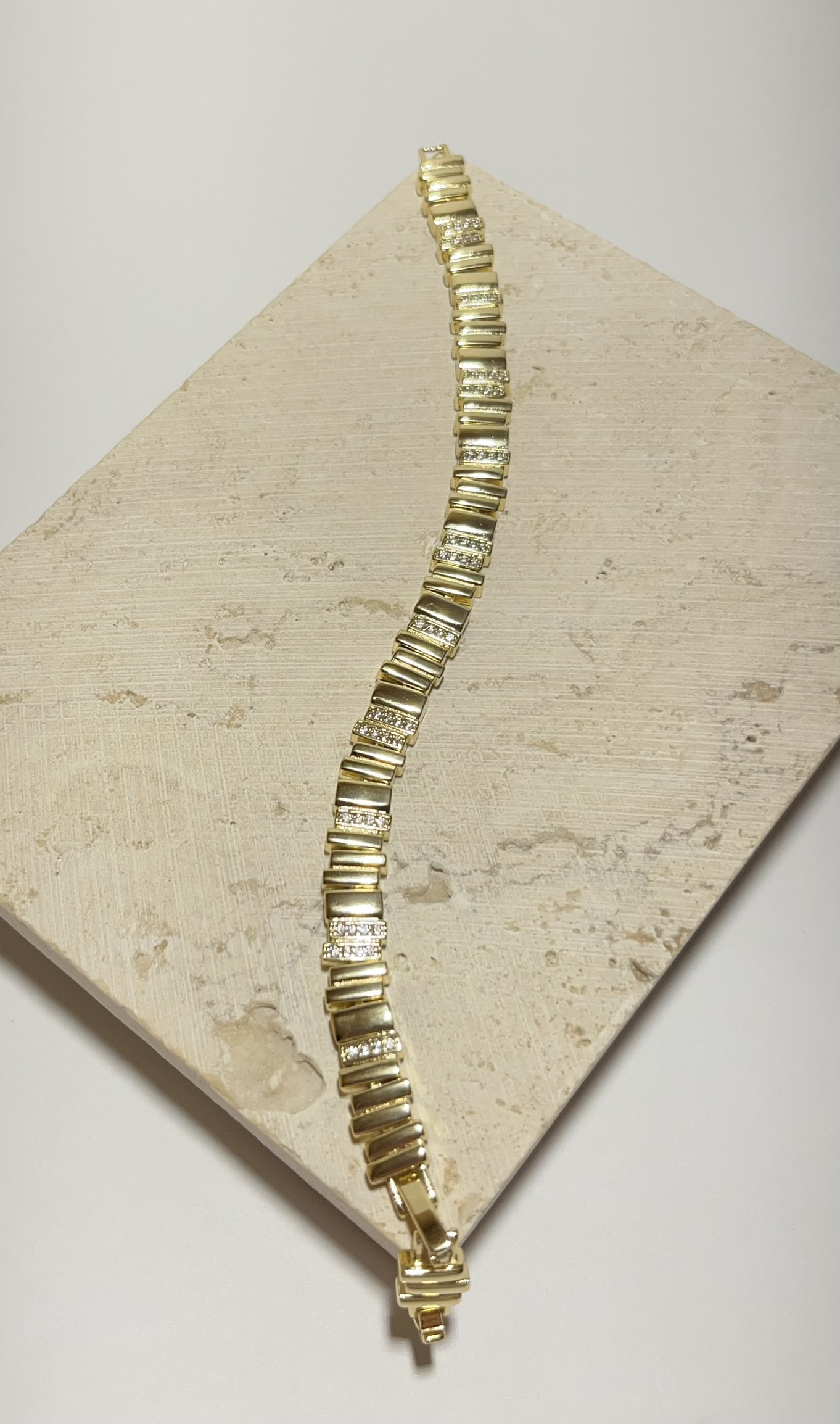 Gold Rengi Zikzaklı Zirkon Taşlı Bileklik