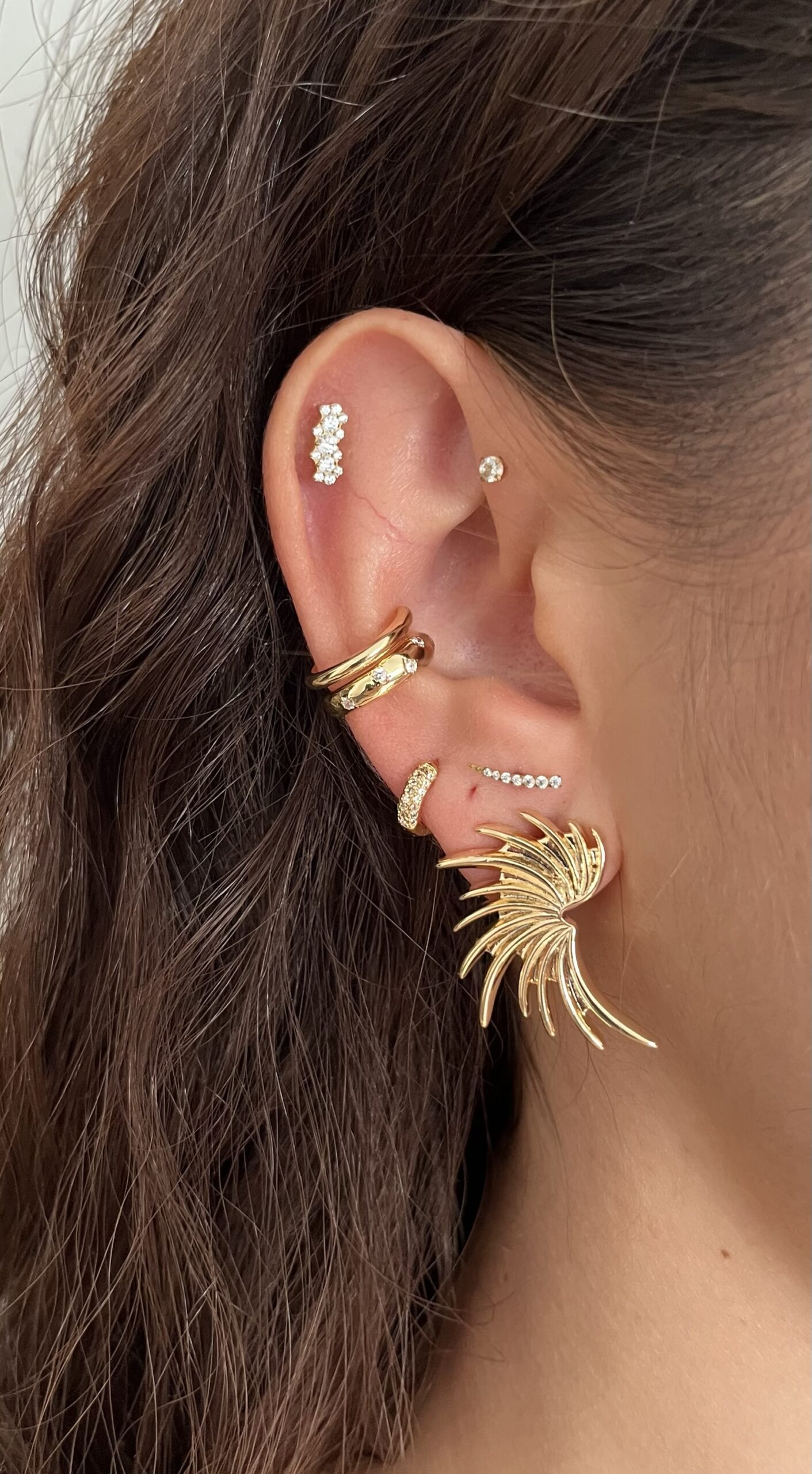 Gold Rengi Zirkon Taşlı Kıkırdak Küpe