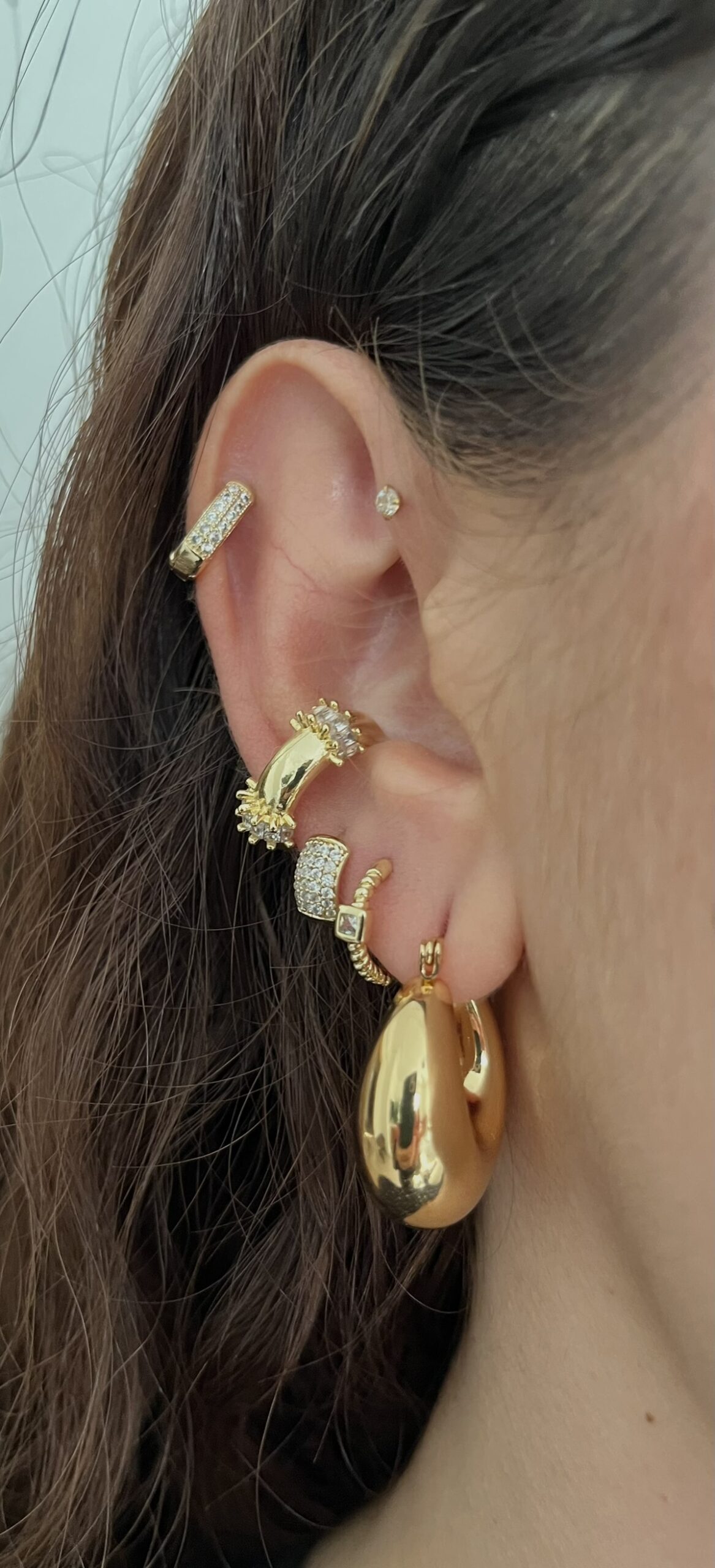 Gold Rengi Zirkon Taşlı Kıkırdak Küpe