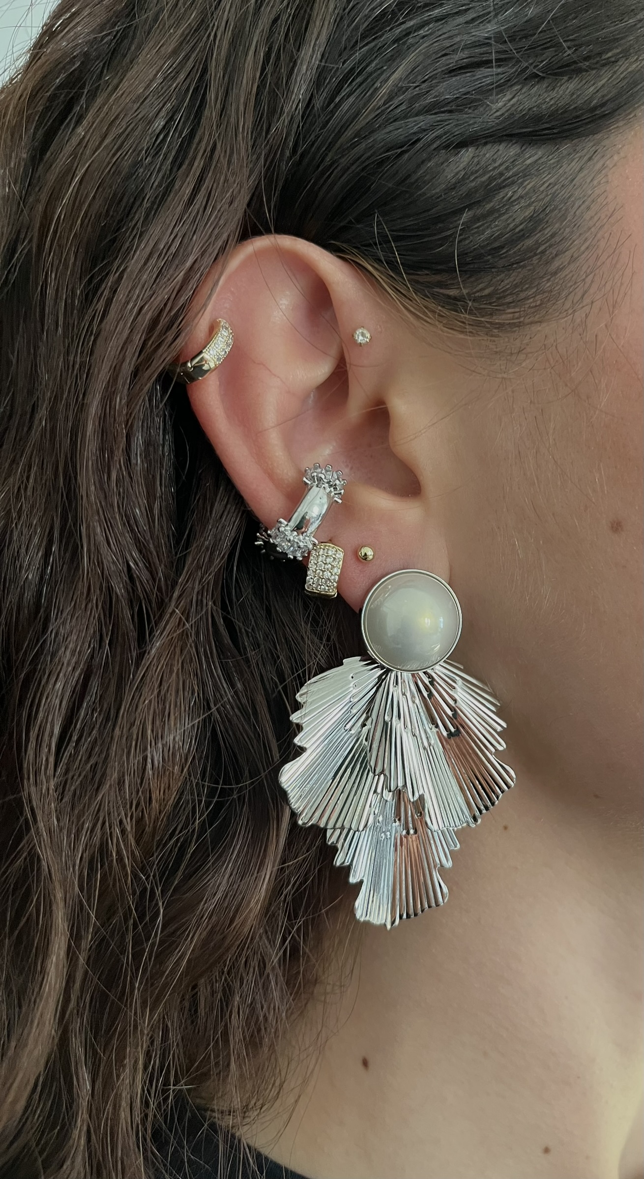 Gümüş Rengi İnci Detaylı Küpe